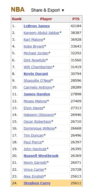 ZongSports > Basketball > Curry s career points reached 25,616 points, surpassing English and rising to 23rd in NBA history!