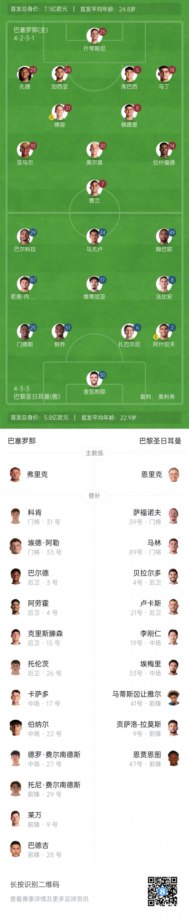 In the second round of the Champions League stage, Barcelona faced Paris Saint-Germain at home, and the pre-match starting list was announced. In Barcelona, Yamal, Ferran and Rashford are on the front line, while in Paris, Dembele is absent due to injury.