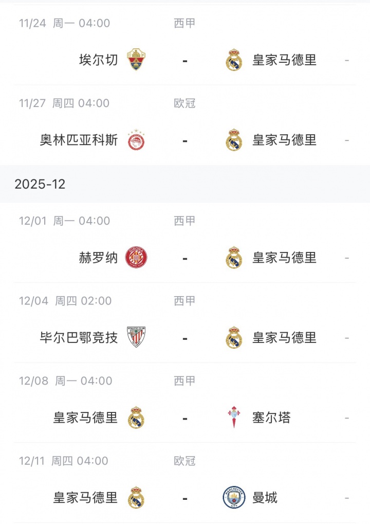 According to reporter Picon's report, Real Madrid players are indignant at the accusation that they are "dissatisfied with Xavi due to excessive training volume." The players understand the need to extend the training time. He also mentioned that playing against Manchester City will be a big test. Real Madrid will have four consecutive away games after the international match day, as well as a Champions League match against Manchester City. Reporter Picon believes that this is a big test for Alonso. He wrote: "Three consecutive away journeys, including against this season's dark horses Elche and Athletic Bilbao. . And the behemoth looms in the distance: The showdown with Manchester City will be another big test to test whether this team has the ability to compete with Europe's top powers - they have failed twice this season." The reporter also cited the example of Ancelotti: "Alonso knows that he is in a gambling situation. This is nothing new for coach Ma. The not-too-distant example is Ancelotti - he also faced a life-and-death battle against Girona last year... and if he failed to improve until Christmas, the club will have to make a decision. " Regarding the players, the reporter finally wrote: " The players are also in the whirlpool, and they are indignant at the accusation that they are "dissatisfied with Xavi because of the excessive training volume". The fact is exactly the opposite: they fully understand the need to extend the training time. " Real Madrid's future schedule
