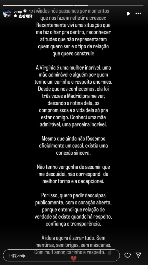Today Vinicius issued a long article to apologize to Virginia: