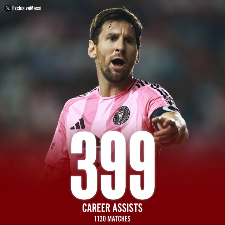 Milestone is coming! At the age of 38, Messi has given out 399 assists, only 1 assist away from 400 assists.